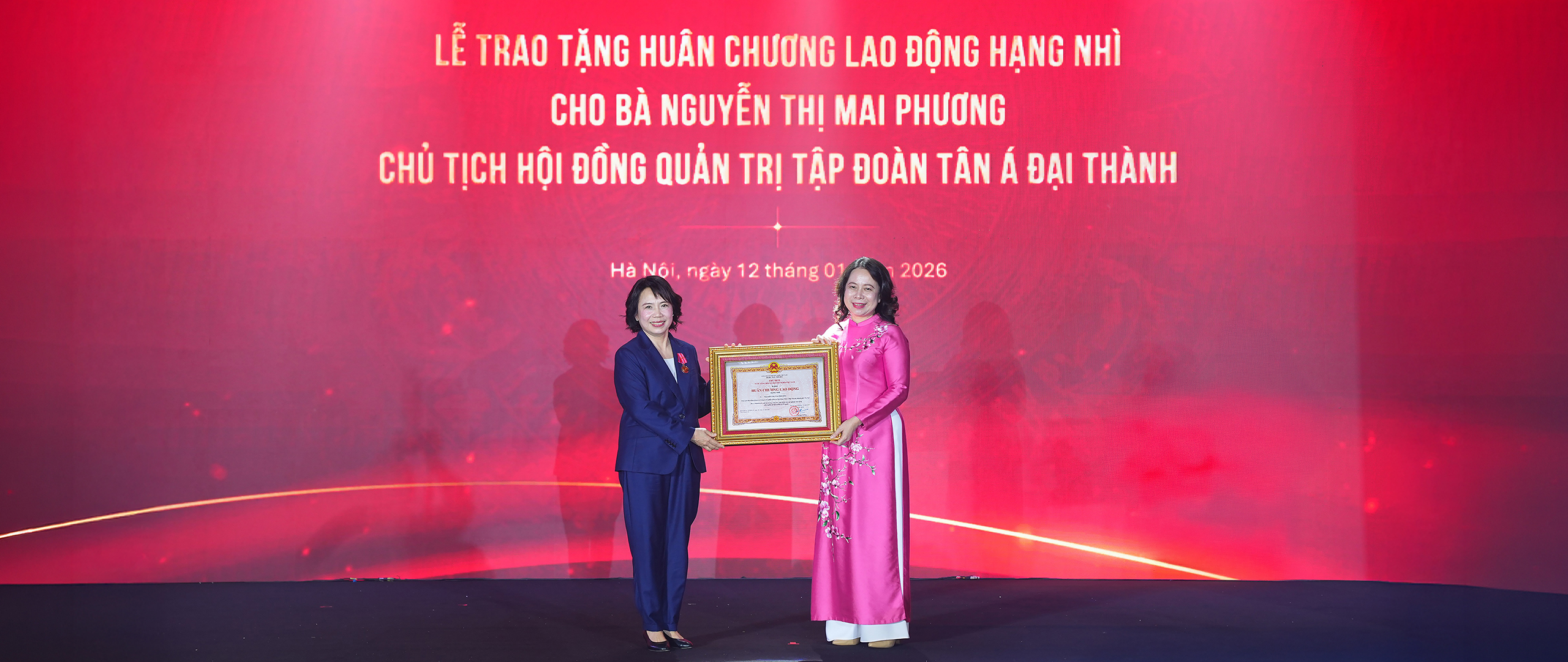 Ngày 12/01/2026, tại Hà Nội, bà Nguyễn Thị Mai Phương – Chủ tịch Hội đồng Quản trị Tập đoàn Tân Á Đại Thành vinh dự được trao tặng Huân chương Lao động hạng Nhì – phần thưởng cao quý của Đảng và Nhà nước ghi nhận những đóng góp tích cực đối với sự nghiệp […]