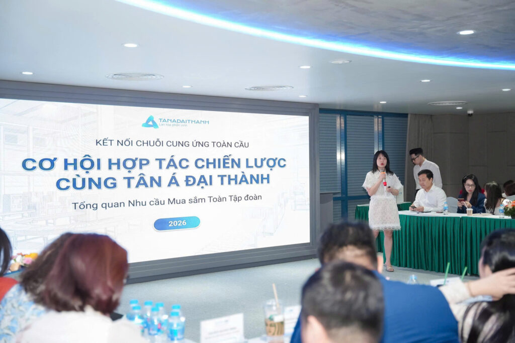 Tại hội nghị, Tân Á Đại Thành đã giới thiệu tổng quan về hệ sinh thái hoạt động, năng lực sản xuất – công nghệ cũng như các nhóm sản phẩm chủ lực của Tập đoàn. Đồng thời, nhu cầu mua sắm và danh mục các dự án bất động sản do Meygroup phát triển cũng được chia sẻ cụ thể, mang đến cái nhìn toàn diện về tiềm lực và định hướng phát triển của Tập đoàn.
