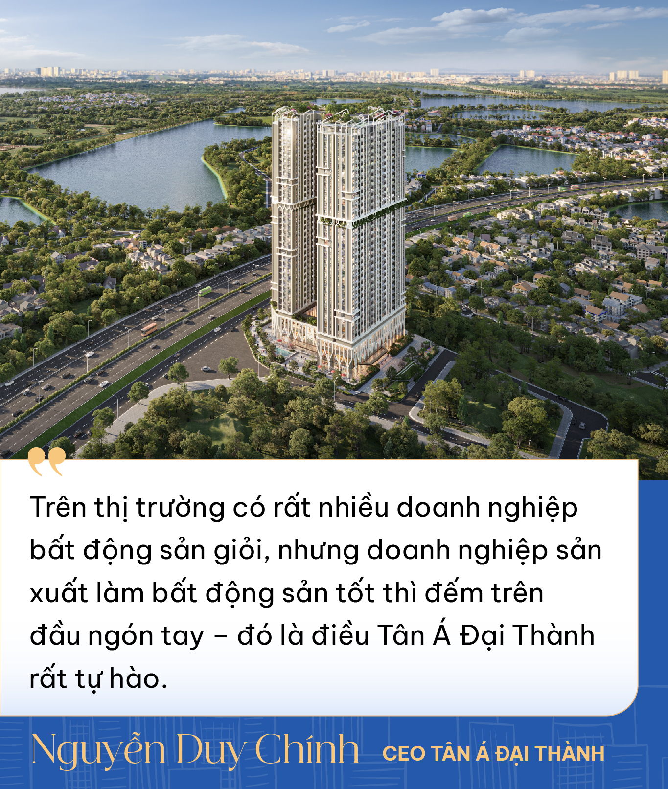 Bất động sản là lĩnh vực mới đối với chúng tôi. Nhưng bước chân vào lĩnh vực này chúng tôi có nhiều lợi thế. Chúng tôi tận dụng quỹ đất đã tích lũy từ giai đoạn sản xuất và khai thác đúng những nguồn lực nội tại đủ mạnh để triển khai. Tân Á Đại Thành chưa bao giờ làm theo phong trào. Tư duy của chúng tôi là phát triển dựa trên những gì mình đang nắm vững, không ôm đồm, không mở rộng ồ ạt. Mỗi dự án đều được lựa chọn kỹ lưỡng và đặt trong tổng kiểm soát để đảm bảo tạo ra giá trị, hiệu quả và bền vững.