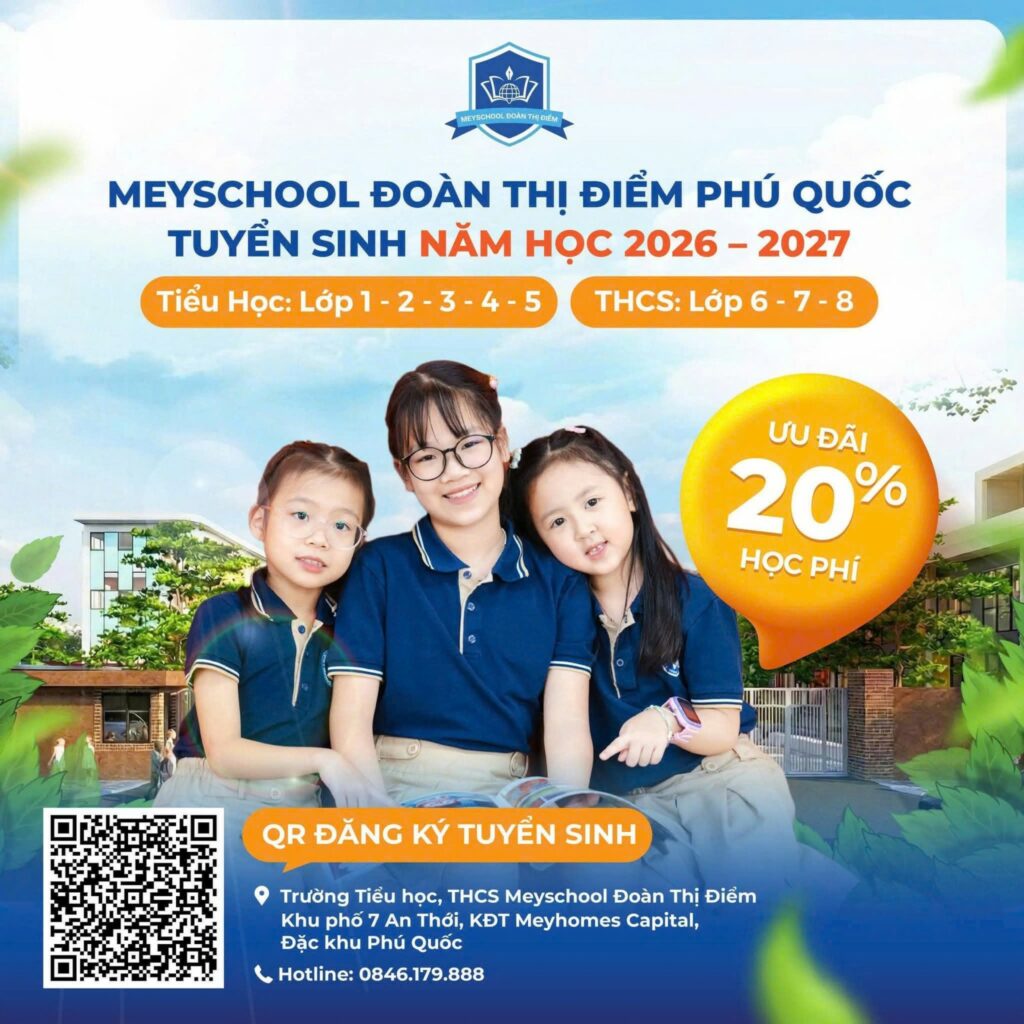 Câu lạc bộ Tuổi thơ tại Trường Tiểu học Meyschool Đoàn Thị Điểm Phú Quốc không chỉ là một chương trình học, mà là một hành trình chuẩn bị toàn diện, giúp trẻ vững vàng bước vào lớp 1 và sẵn sàng cho chặng đường phía trước. Với định hướng giáo dục hiện đại, môi trường học tập truyền cảm hứng và sự đồng hành của đội ngũ giáo viên tâm huyết, chương trình hứa hẹn trở thành lựa chọn tin cậy của nhiều phụ huynh trong năm học 2026 – 2027, góp phần kiến tạo một thế hệ học sinh tự tin, chủ động và hội nhập.